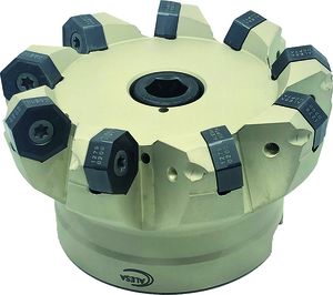 在 45°HEPTA面銑刀 都配備了總共14個切削刃(2×7)雙面可轉位刀片。鋒利的磨削邊緣需要較少的主軸功率并且工藝友好。每個邊緣都有一個用于高質量表面的磨光階段。不均勻的節距以及剝離切削過程和良好的平衡是 5 軸加工中心銑削過程的理想環境。