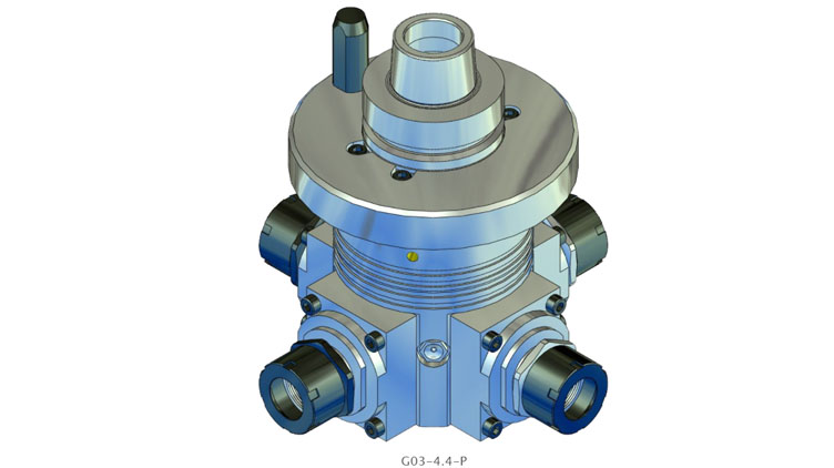 G03 系列的角頭具有多達四個加工主軸。所有刀架的主軸旋轉方向始終與驅動器的旋轉方向相同。驅動速度以 1:1.55 的比例傳遞到刀架。間歇運行時主軸最高轉速可達 18,000 rpm。