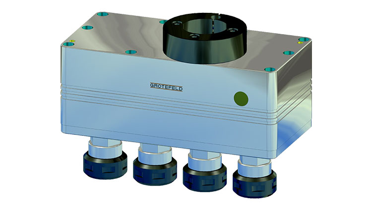 帶有夾緊環(huán) B100 的 VS16 齒輪箱也可以由鉆孔主軸 B045 和驅(qū)動單元 D045 驅(qū)動。此外,使用我們的驅(qū)動適配器 DN 和 DMN 可以適應(yīng)機床主軸以及 GROTEFELD 旋轉(zhuǎn)單元 DVM。