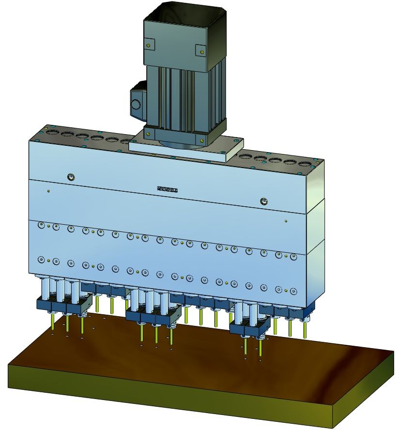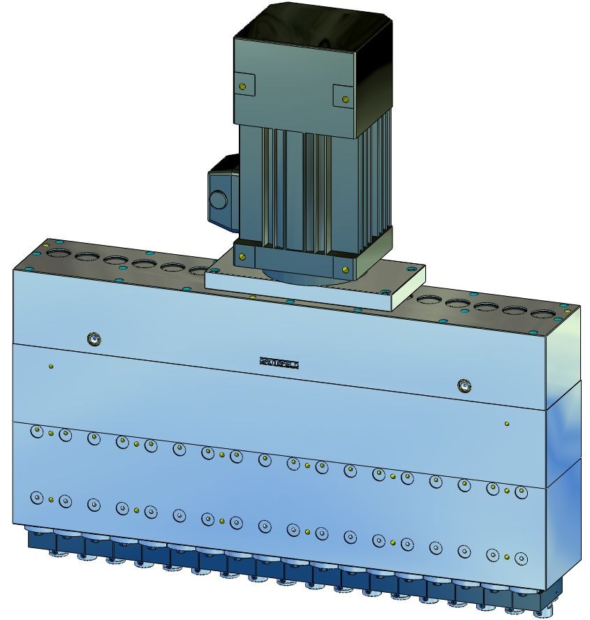 DBE04 系列的單排可控鉆孔主軸單元可以補充電磁閥。電磁閥安裝在相應(yīng)氣缸背面的板上。這些板通過空氣管道相互連接。這樣做的優(yōu)點是主供氣只需供應(yīng)一次。