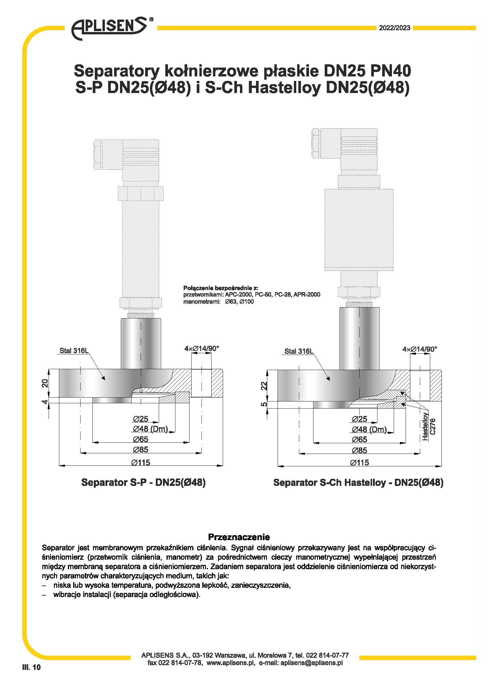 平法蘭分離器 DN25 PN10 / 40 S-P S-Ch-波蘭APLISENS