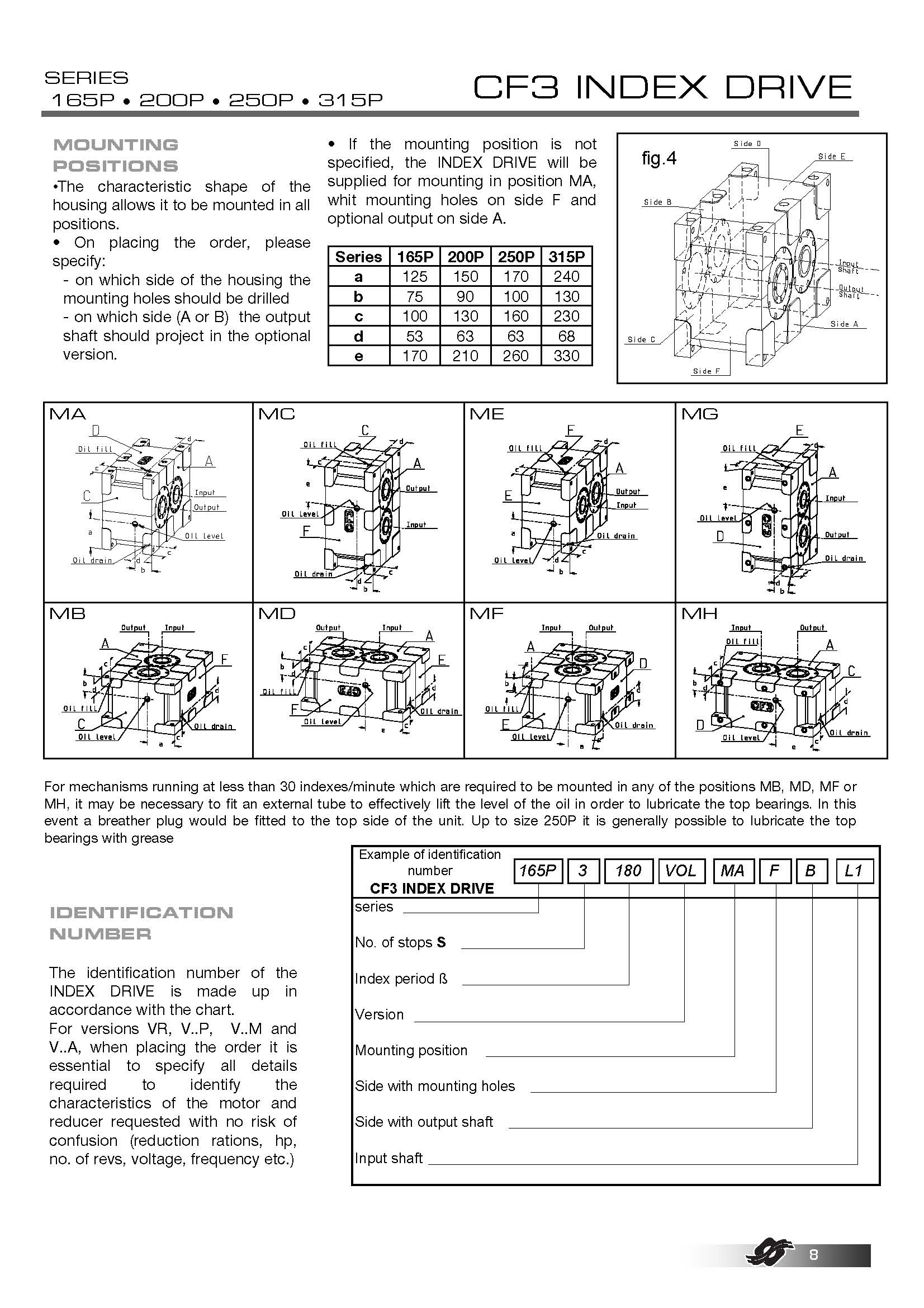 | 軸心距(mm): | 40 - 65 - 80 - 105 - 130 - 165 - 200 - 250 - 315 |