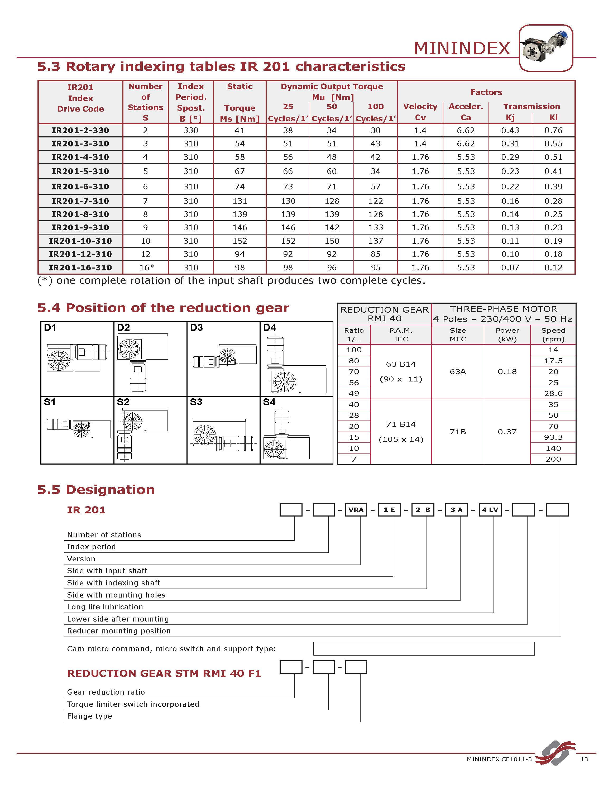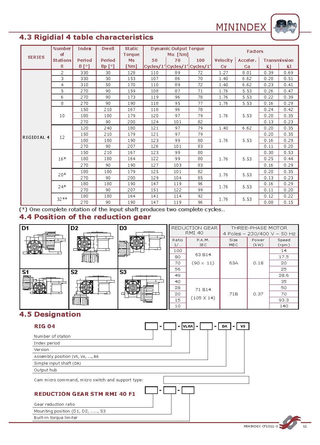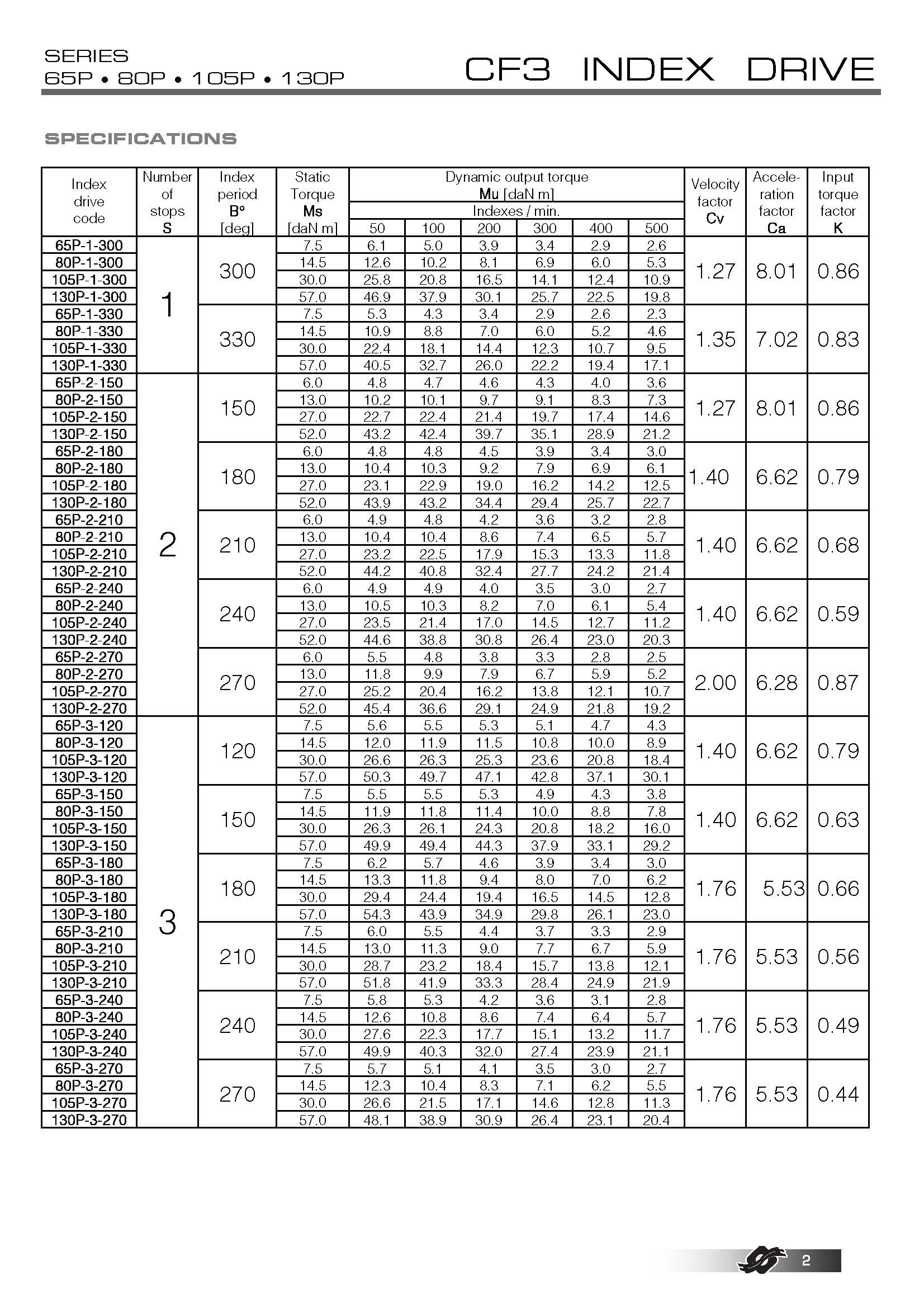 | 凸輪索引周期: | 高達 330° |